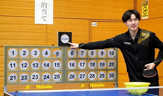さらに、イベントコーナーでは、選手が直接指導を行い参加者と交流したほか、的当てゲームではCITIZENタオルや選手たちのサイン入りTシャツなどの景品を求めて長蛇の列ができ、卓球の楽しさを多くの皆さまに体感していただけました。